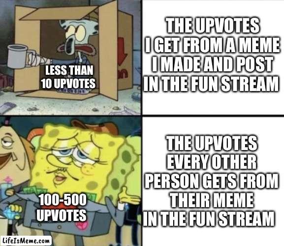It feels like when I post a good meme it gets 6 upvotes but when someone else posted something they get 500 upvotes Download image 0 0