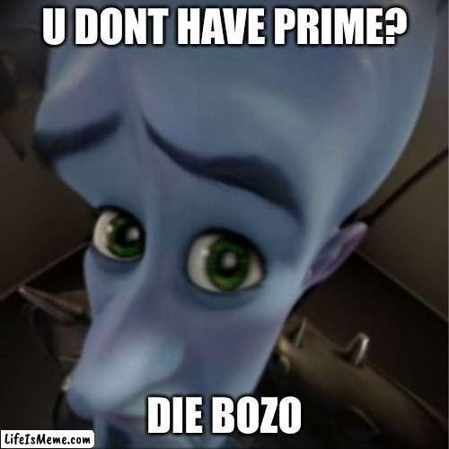 prime is overrated and shouldn't wxist. Andrew will win facing Logan Oauk | U DONT HAVE PRIME? DIE BOZO | image tagged in megamind peeking,bozo | made w/ Lifeismeme meme maker
