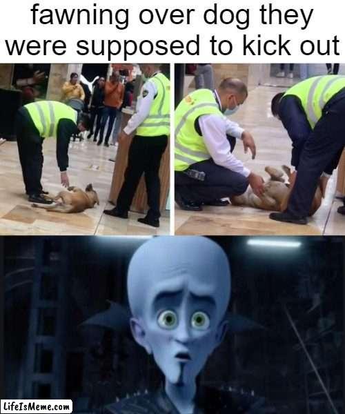The guards aren't necessarily bad guys to us, but they sure are to doggos. | Mall Security Guards fawning over dog they were supposed to kick out | image tagged in well maybe i dont want to be the bad guy anymore | made w/ Lifeismeme meme maker